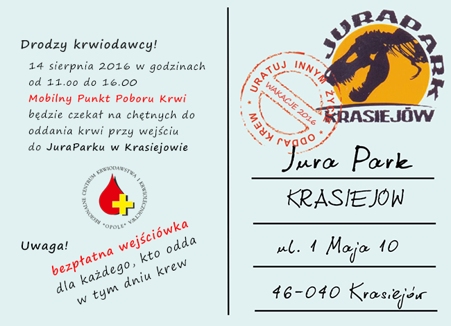 14 sierpnia pobieramy krew w JuraParku w Krasiejowie
