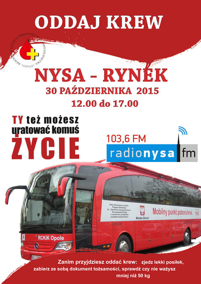 30 października 2015 pobieramy krew na Rynku w Nysie