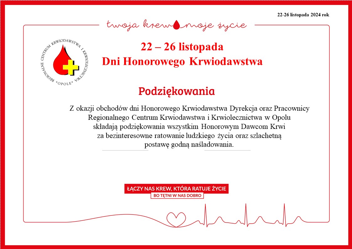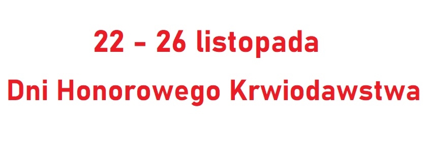 Dni Honorowego Krwiodawstwa 22 do 26 listopada