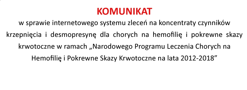 w sprawie internetowego systemu zleceń na koncentraty czynników krzepnięcia i desmopresynę dla chorych na hemofilię i pokrewne skazy krwotoczne w ramach „Narodowego Programu Leczenia Chorych na Hemofilię i Pokrewne Skazy Krwotoczne na lata 2012-2018”