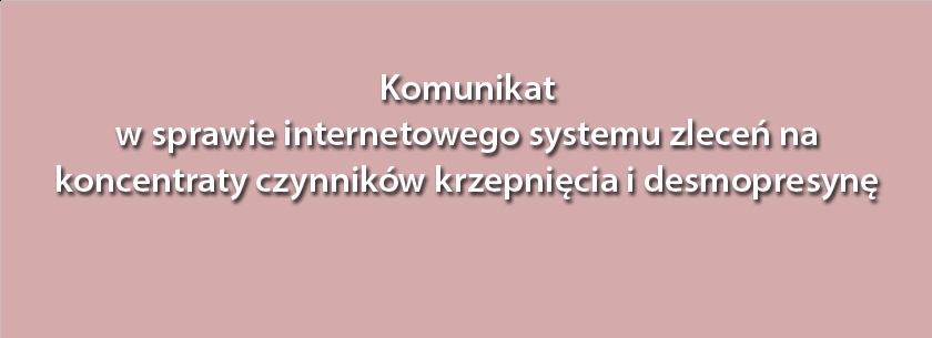 w sprawie internetowego systemu zleceń na koncentraty czynników krzepnięcia i desmopresynę dla chorych na hemofilię i pokrewne skazy krwotoczne w ramach „Narodowego Programu Leczenia Chorych na Hemofilię i Pokrewne Skazy Krwotoczne na lata 2012-2018”
