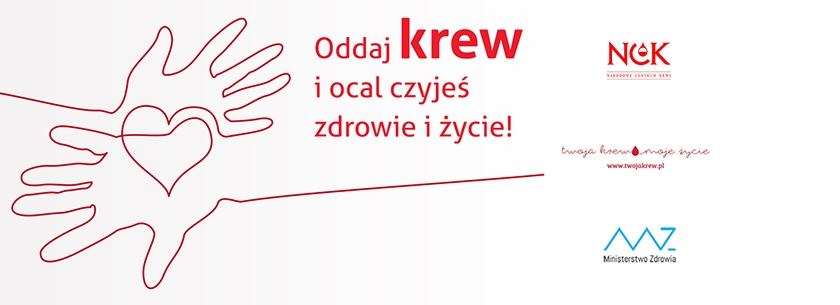 Kampania społeczna "Twoja krew, moje życie" realizowana w ramach programu polityki zdrowotnej pn "Zapewnienie samowystarczalności Rzeczypospolitej Polskiej w krew i jej składniki na lata 2021-2026" finansowana ze środków Ministra Zdrowia.