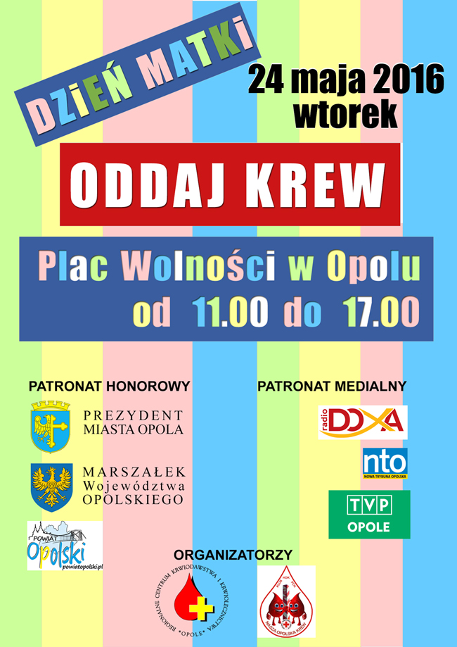 Oddaj krew 24 maja 2016 r. na Placu Wolności w Opolu