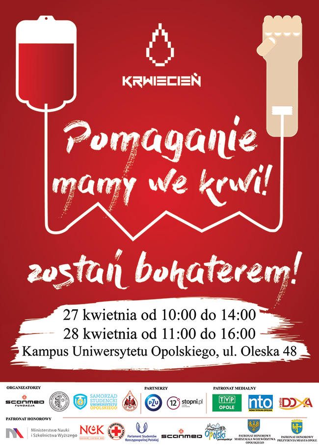 Kampania społeczna "Twoja krew, moje życie" realizowana w ramach programu polityki zdrowotnej pn "Zapewnienie samowystarczalności Rzeczypospolitej Polskiej w krew i jej składniki na lata 2021-2026" finansowana ze środków Ministra Zdrowia.