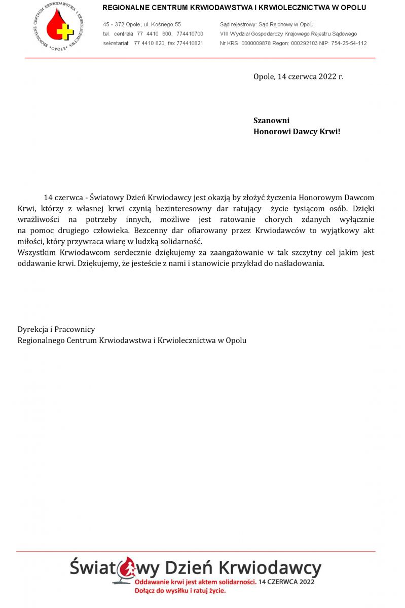 Składamy życzenia Krwiodawcom
