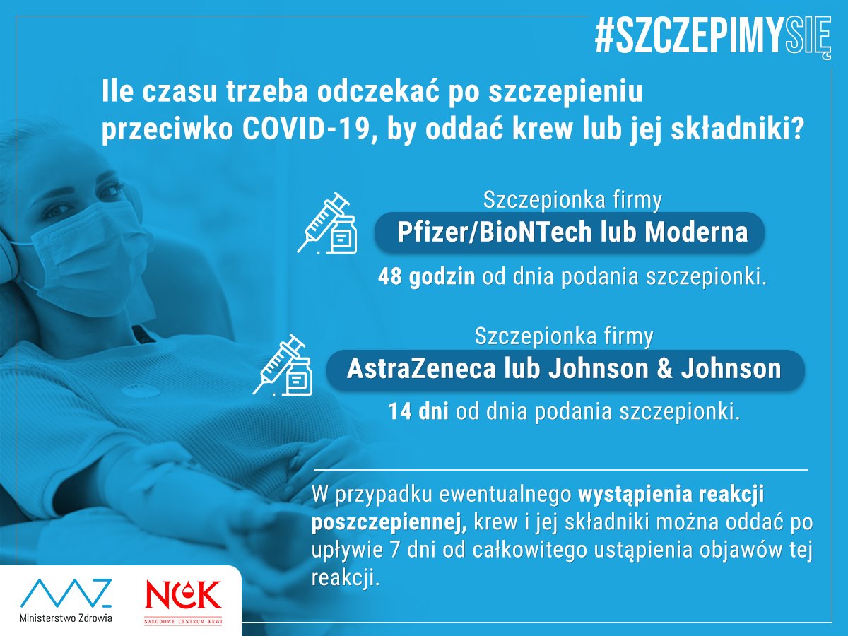 Ile trzeba czasu odczekać po szczepieniu przeciwko COVID-19, by oddać krew lub jej składniki?