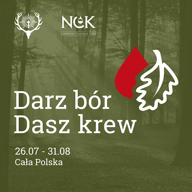 Od 26 lipca br. do końca sierpnia br. trwa ogólnopolska zbiórka krwi organizowana z inicjatywy Polskiego Związku Łowieckiego przy współpracy 21 Regionalnych Centrów Krwiodawstwa i Krwiolecznictwa. Podczas oddania krwi bądź jej składników należy podać hasło: „DARZ BÓR – DASZ KREW”.