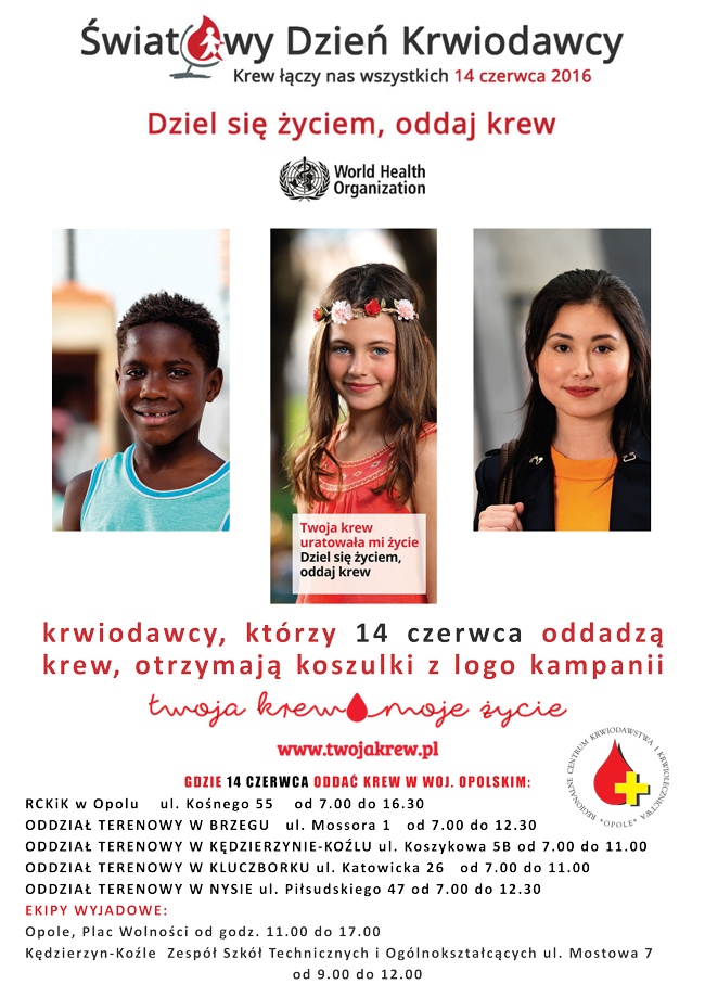 Kampania społeczna "Twoja krew, moje życie" realizowana w ramach programu polityki zdrowotnej pn "Zapewnienie samowystarczalności Rzeczypospolitej Polskiej w krew i jej składniki na lata 2021-2026" finansowana ze środków Ministra Zdrowia.