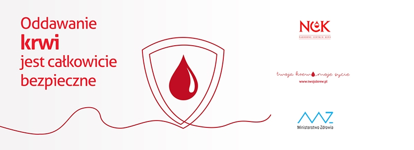 Kampania społeczna "Twoja krew, moje życie" realizowana w ramach programu polityki zdrowotnej pn "Zapewnienie samowystarczalności Rzeczypospolitej Polskiej w krew i jej składniki na lata 2021-2026" finansowana ze środków Ministra Zdrowia.
