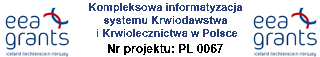 Projekt PL 0067 pt.: „Kompleksowa informatyzacja systemu krwiodawstwa i krwiolecznictwa w Polsce” jest realizowany przez Beneficjenta tj. Instytut Hematologii i Transfuzjologii w Warszawie. Regionalne Centrum Krwiodawstwa i Krwiolecznictwa w Opolu nalezy do Konsorcjum zrzeszajcym 21 Regionalnych Centrów Krwiodawstwa i Krwiolecznictwa w Polsce, bdcych partnerami Beneficjenta.